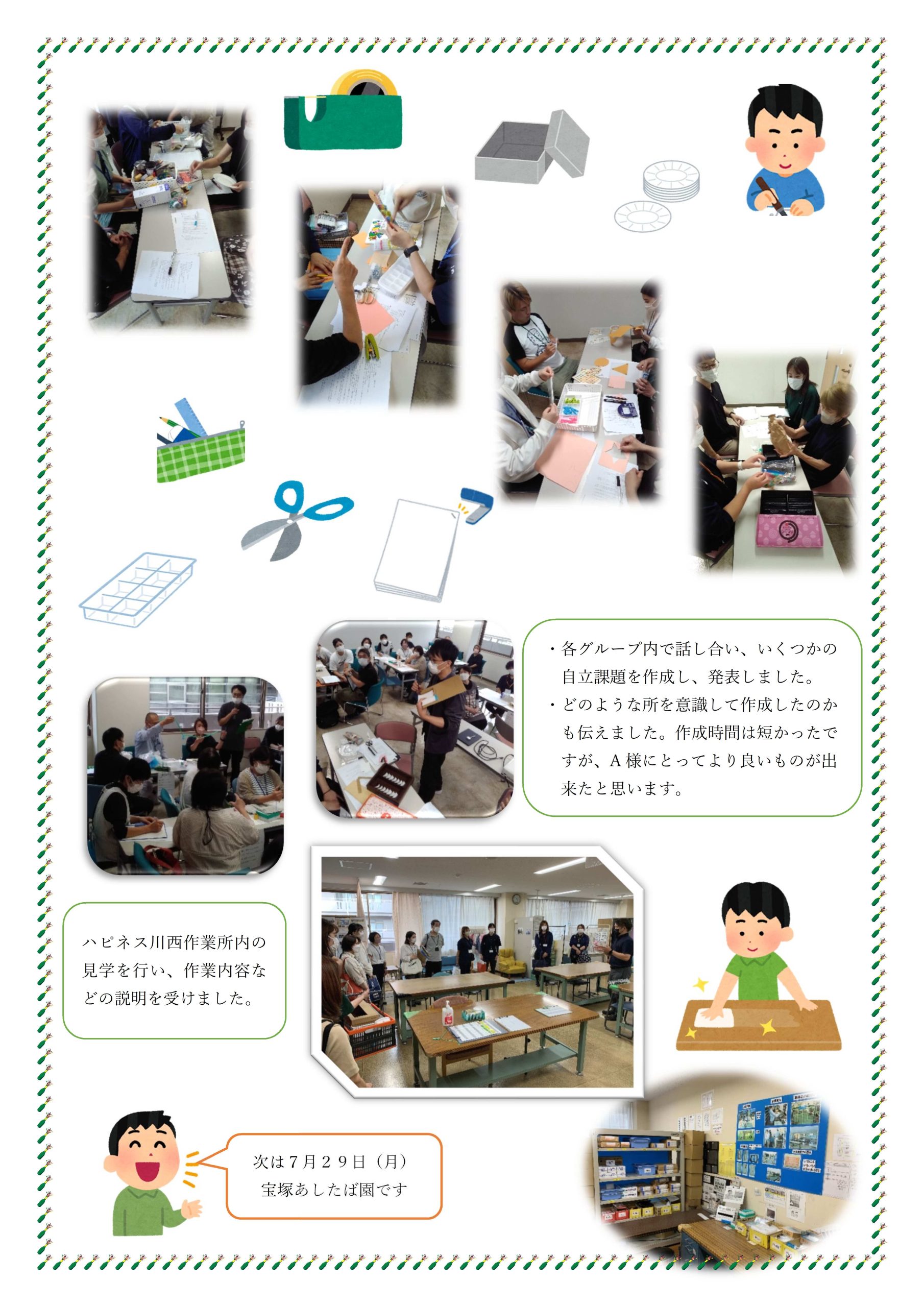 令和6年6月24日(月)川西市内にあるハピネス川西作業所にて自立課題の作成や施設見学を行い、8つの事業所から38名の職員が参加されました。