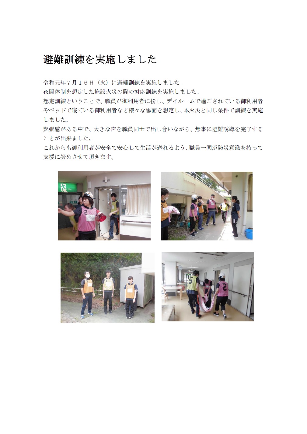 避難訓練実施しました